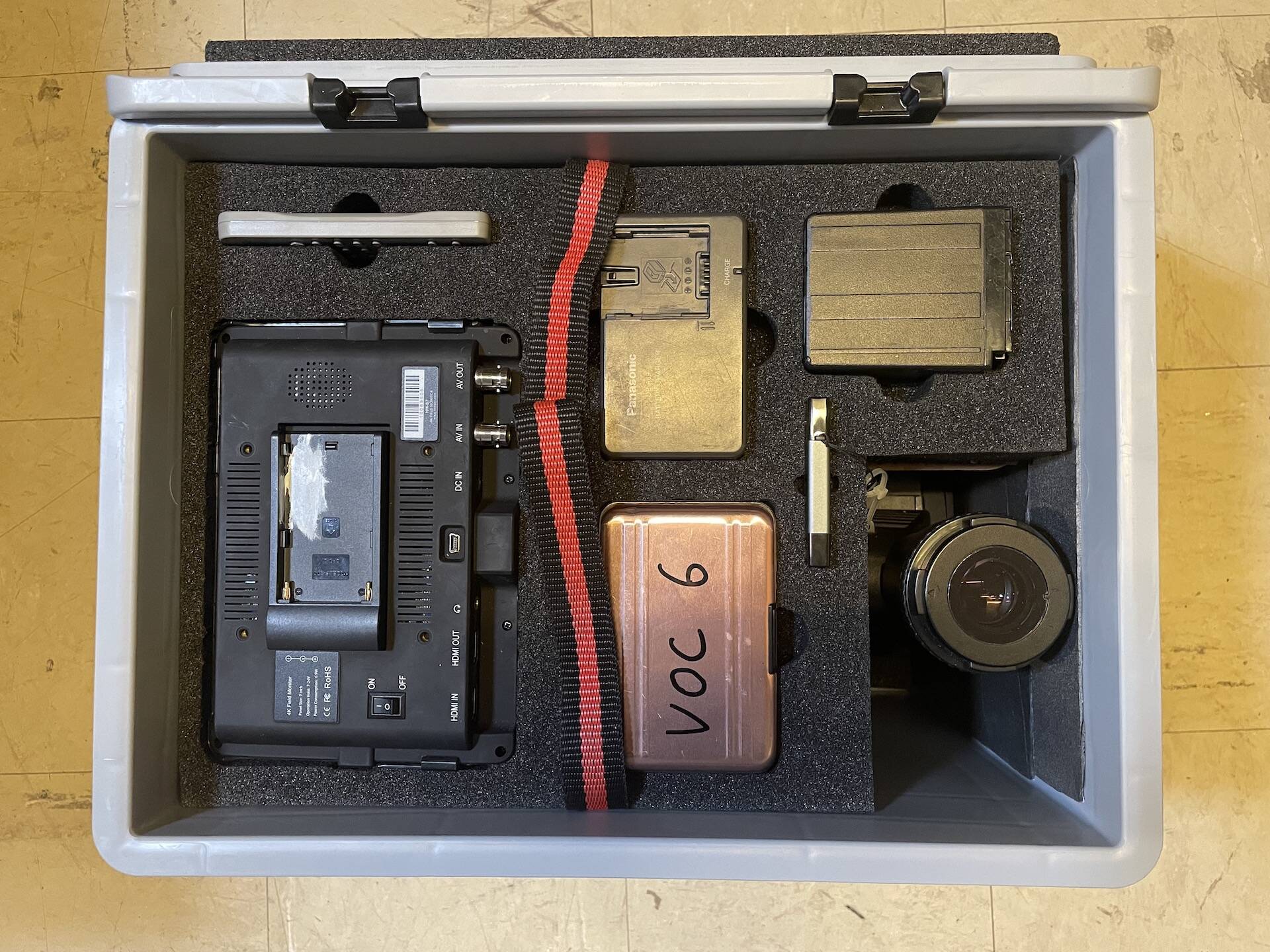 | Caption: | Top level with preview monitor, battery, SD cards, etc. |