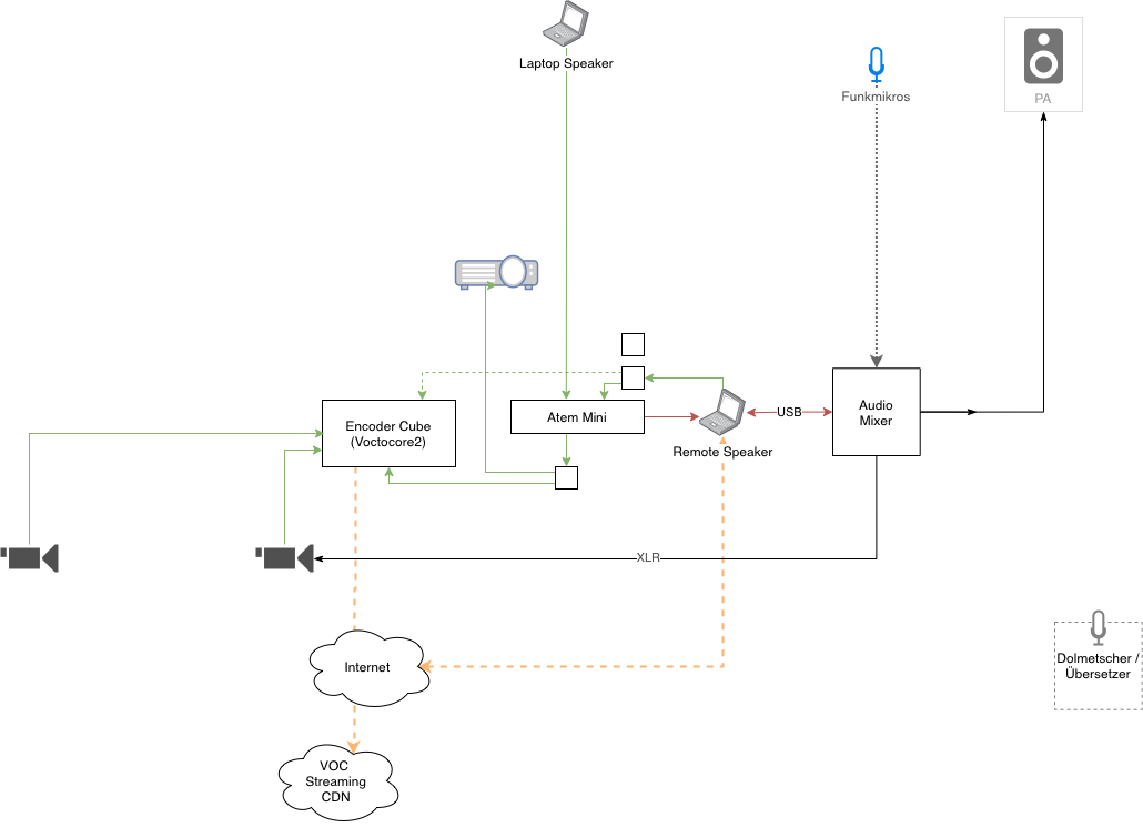 Ort von Strom- und Netzwerk-Anschlüssen in den Hörsälen geklärt? - Ort für Kamera und Mischerplatz in den Hörsälen geklärt? (Fluchtwege beachten!)